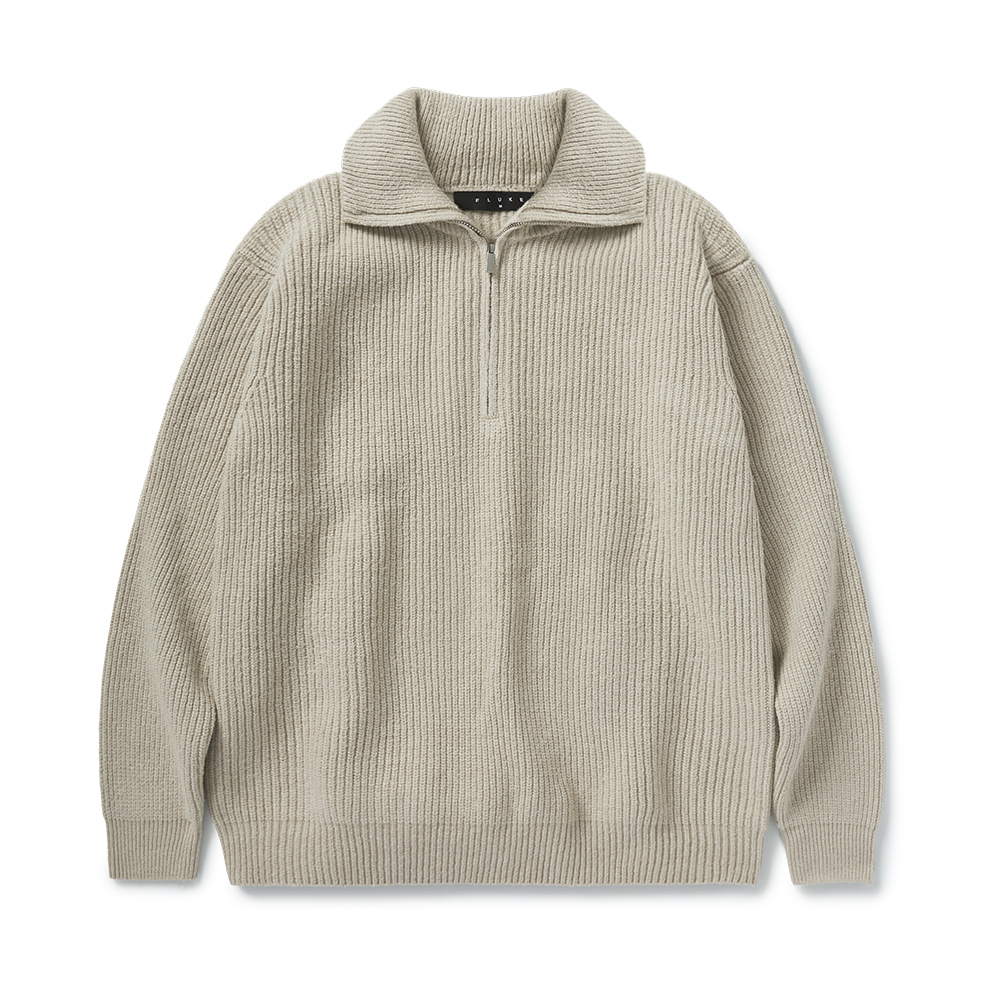 Overfit Volume Half zip-up Ribbed Knit Beige FNT101