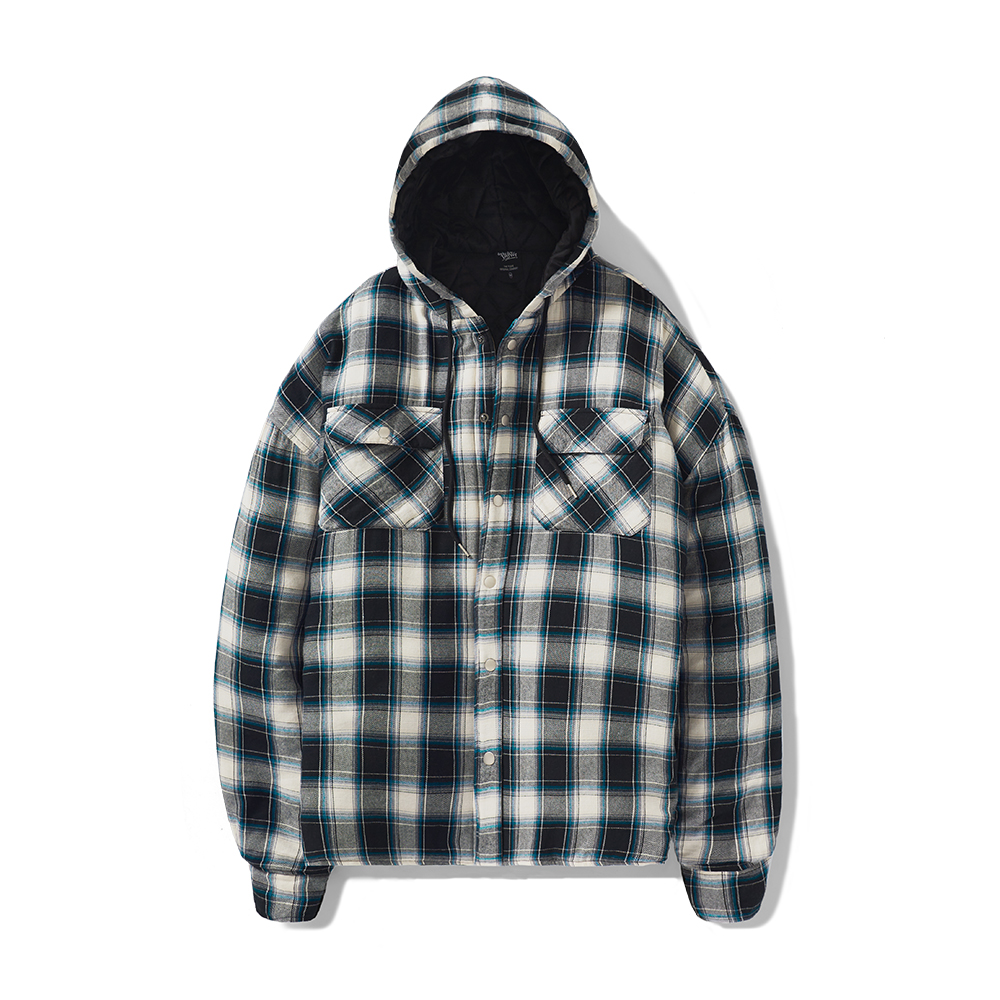 Overfit Hoodie Checkered Padded Jacket Navy FJK109