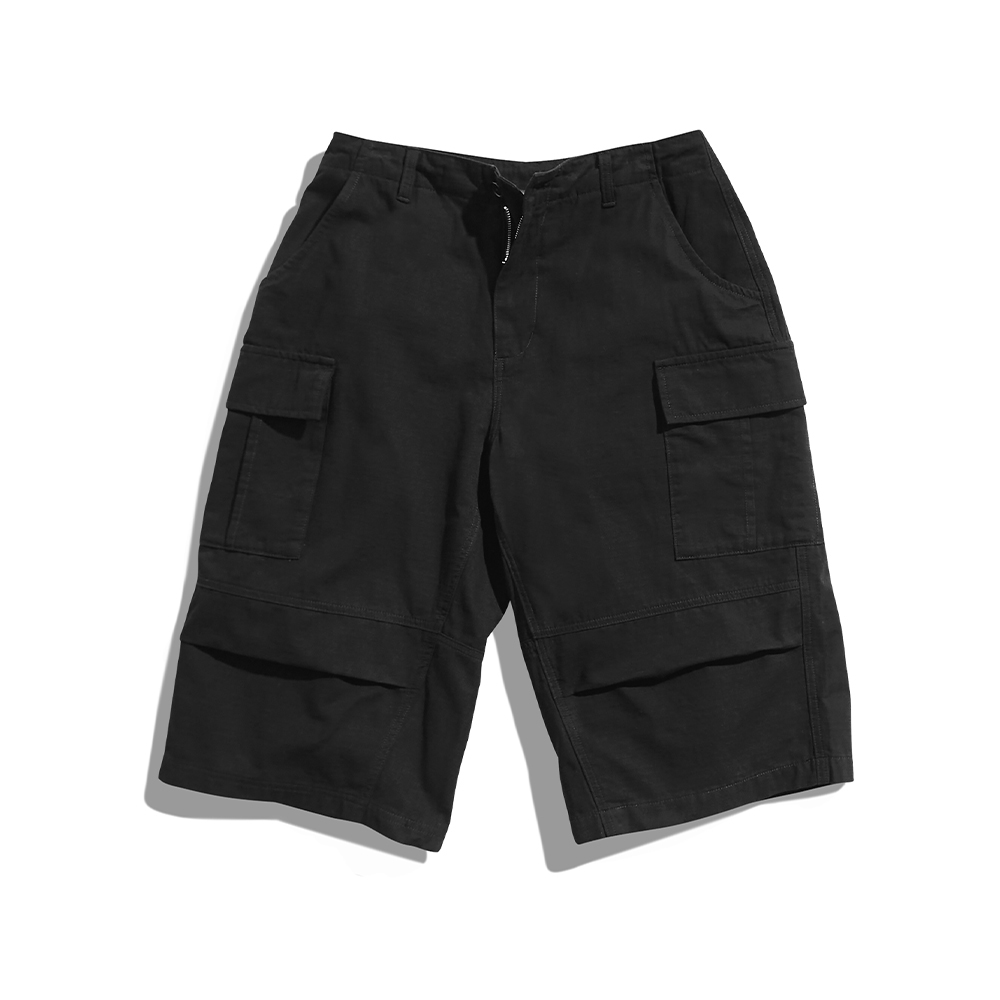 FLUKE RIPSTOP CARGO HALF PANTS BLACK FSP122