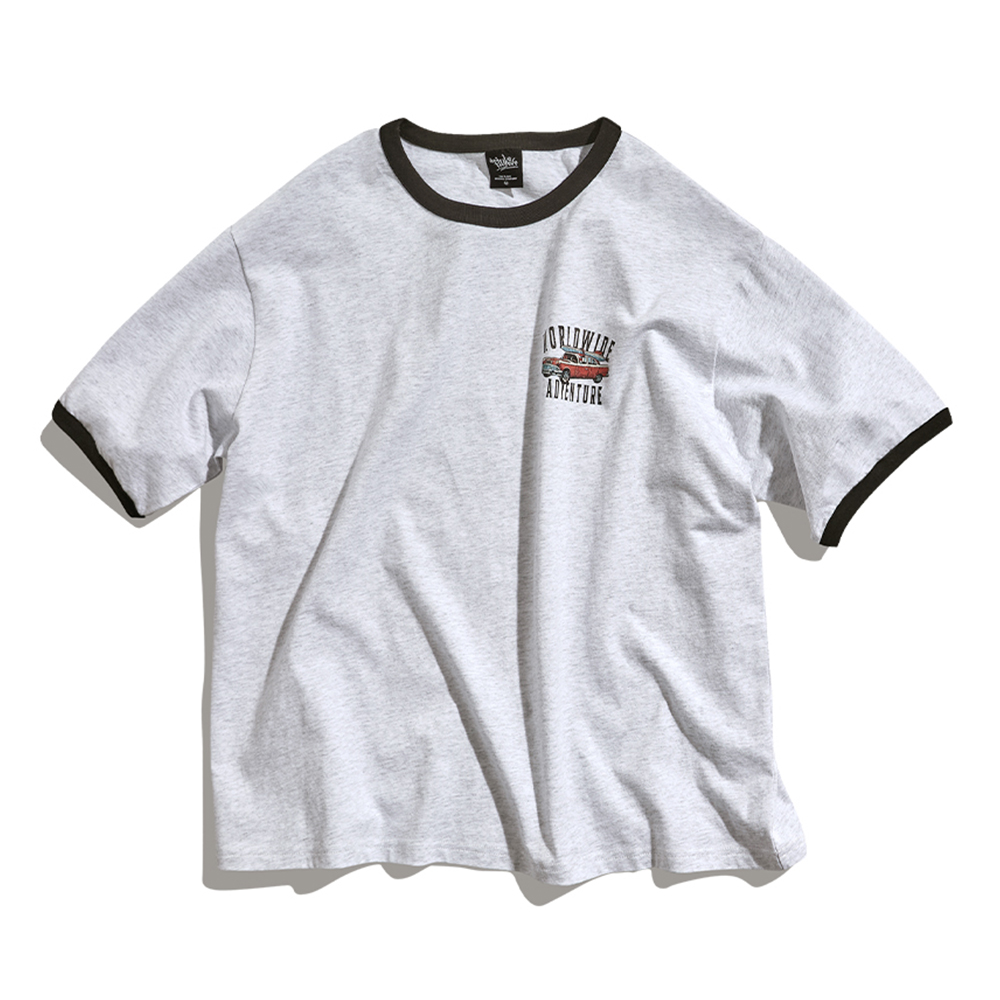 WORLDWIDE ADVENTURE RINGER SHORT SLEEVE T-SHIRT ASH DARK GRAY FST347