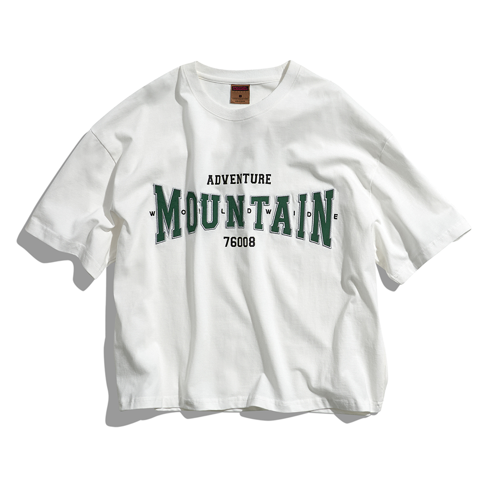 CROP WORLD MOUNTAIN EMBROIDERED LOGO PIGMENT SHORT SLEEVE T-SHIRT WHITE FST741C