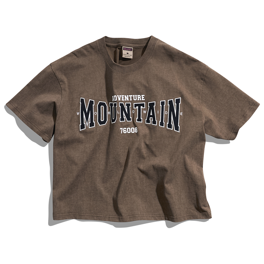 CROP WORLD MOUNTAIN EMBROIDERED LOGO PIGMENT SHORT SLEEVE T-SHIRT BROWN FST741C