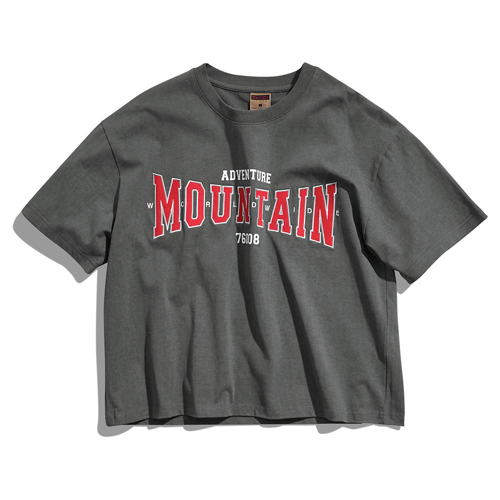 CROP WORLD MOUNTAIN EMBROIDERED LOGO PIGMENT SHORT SLEEVE T-SHIRT DARK GRAY FST741C