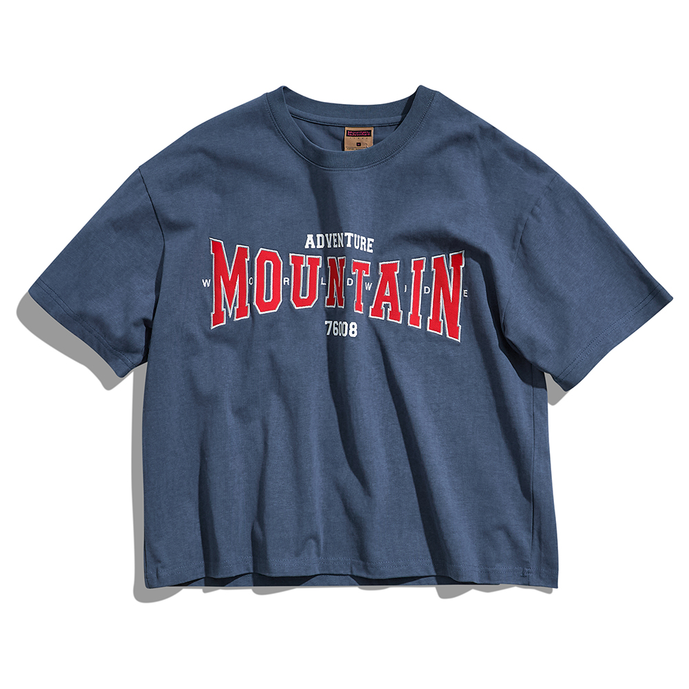 CROP WORLD MOUNTAIN EMBROIDERED LOGO PIGMENT SHORT SLEEVE T-SHIRT NAVY FST741C