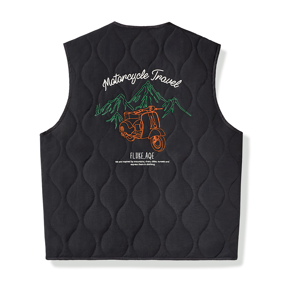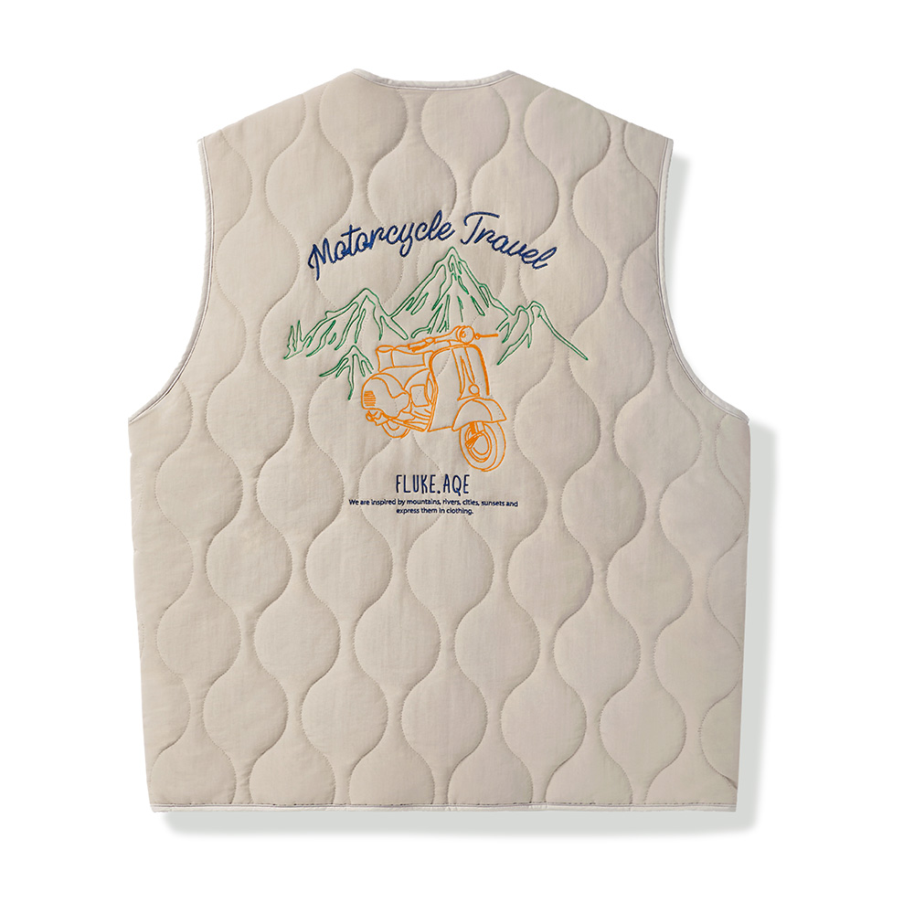 Traveler Embroidery Quilted Vest Khaki FVT207