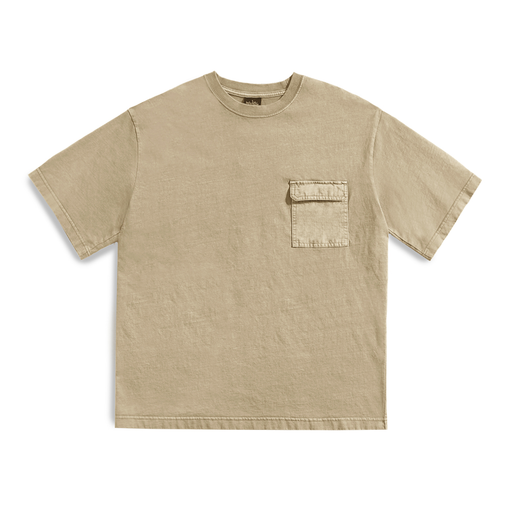 Out pocket slam logo patch pigment short sleeve t-shirt beige FST734