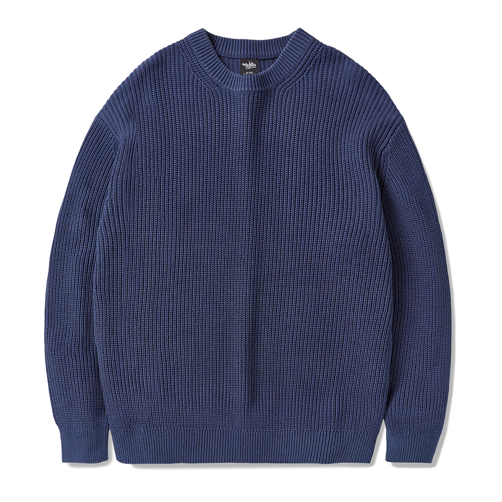 Pigment Hatch Round Knit Sweater Navy FNT102