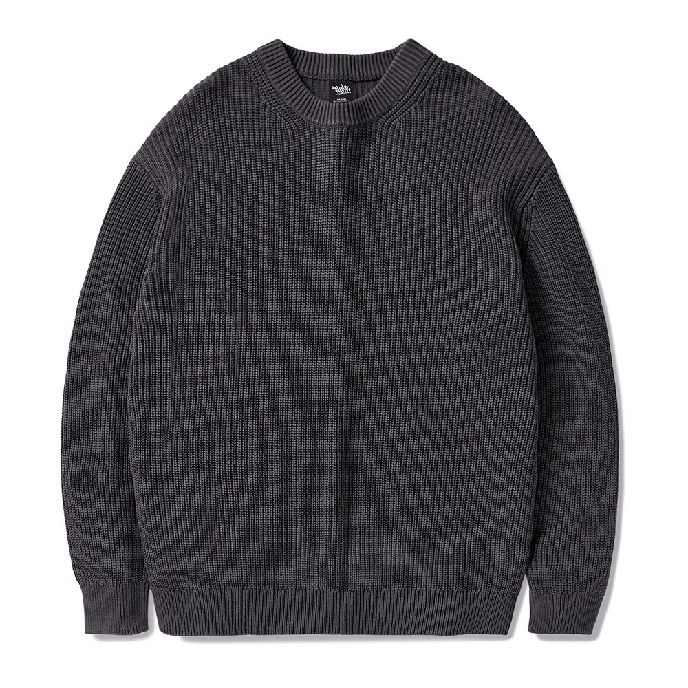 Pigment Hatch Round Knit Sweater D.Gray FNT102