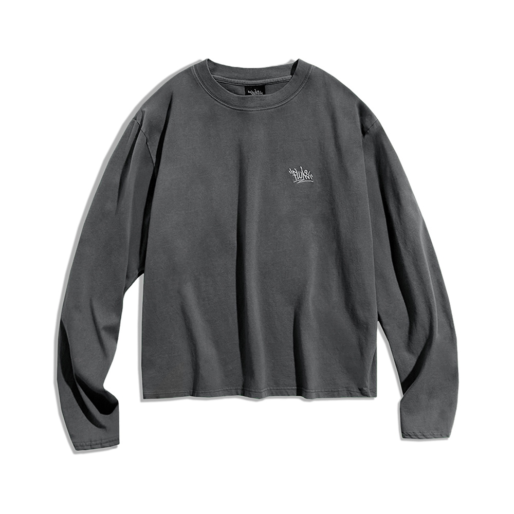 FLUKE SIGNATURE LOGO PIGMENT CROP LONG SLEEVE DARK GRAY FLT719